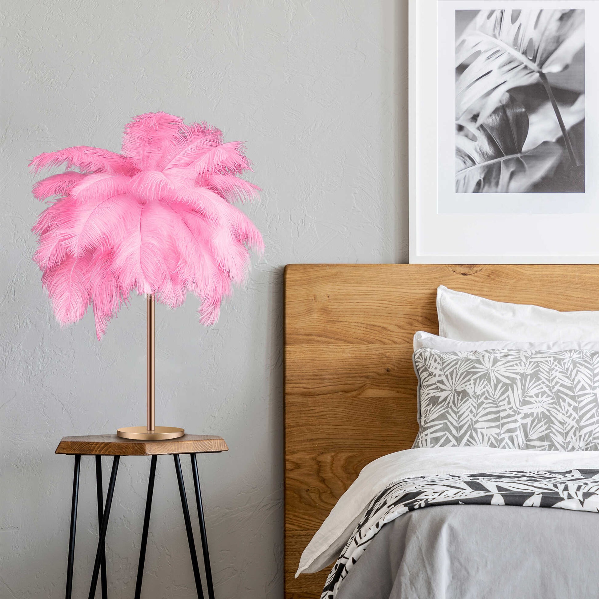 - Protection: Use coasters or placemats to prevent damage from hot or wet items.The Feather Lamp combines modern beauty and daily function. Its skinny silhouette and gold-finished wrought iron base add a stroke of art deco elegance, making it a captivating focal point. It's a gentle statement of your taste, designed to transform your bedroom vanity, living room console, or home office into a personal sanctuary of comfort and style.